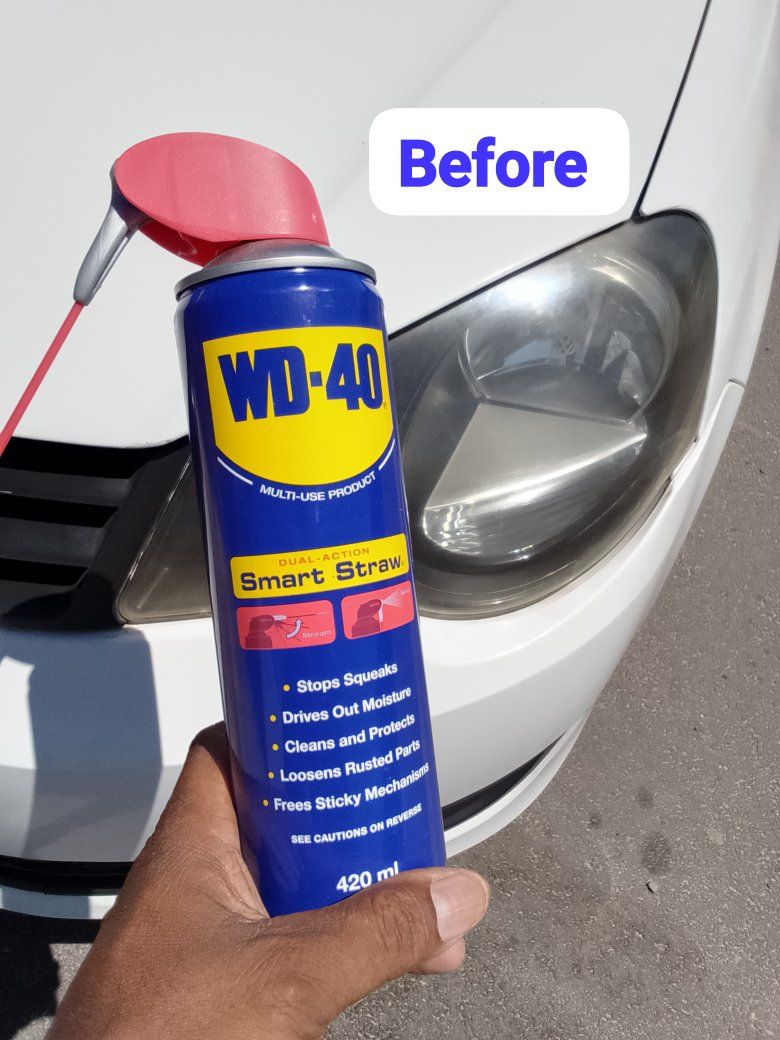 DIY HEADLIGHTS REFURBISHED....USED WD -40 MULTI USE PRODUCT SMART STRAW ...IT REMOVED DIRT AND REFURBISHED THE HEADLIGHTS PERFECTLY