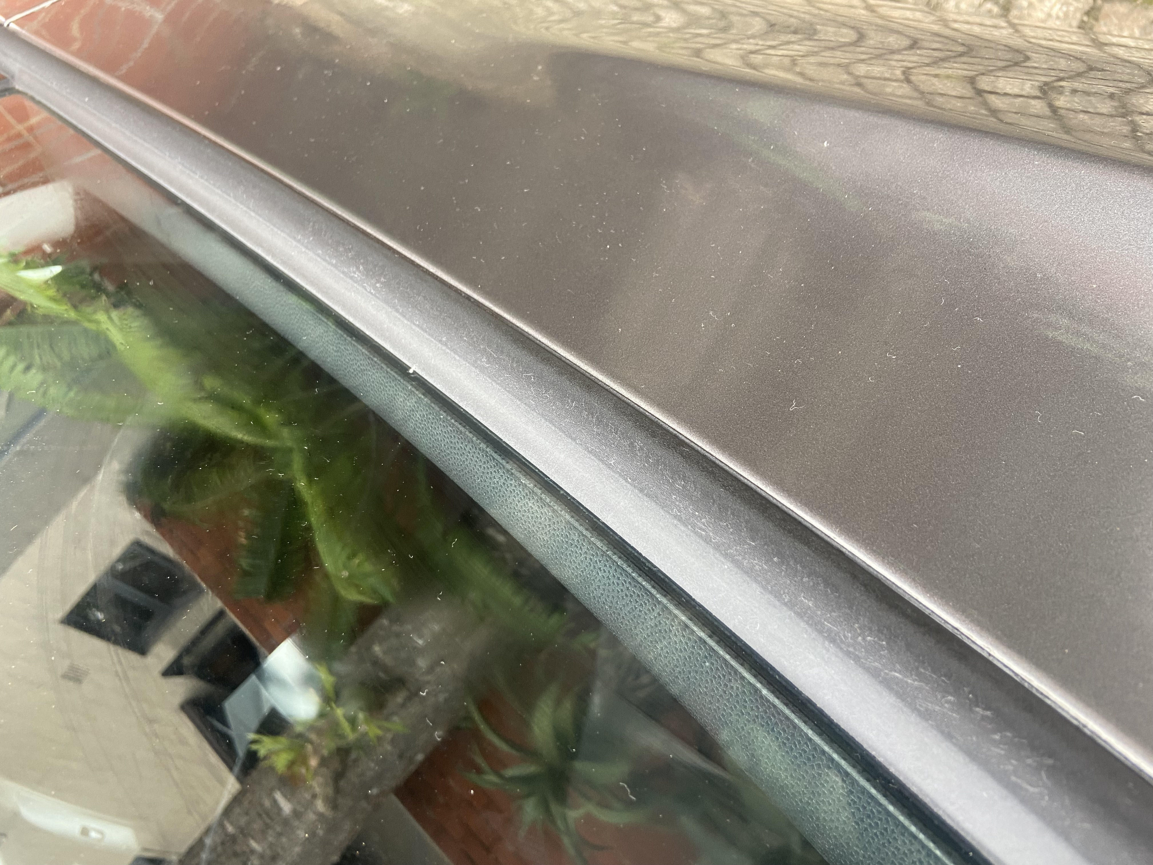 Dull and dirty rubber trims on my car window.